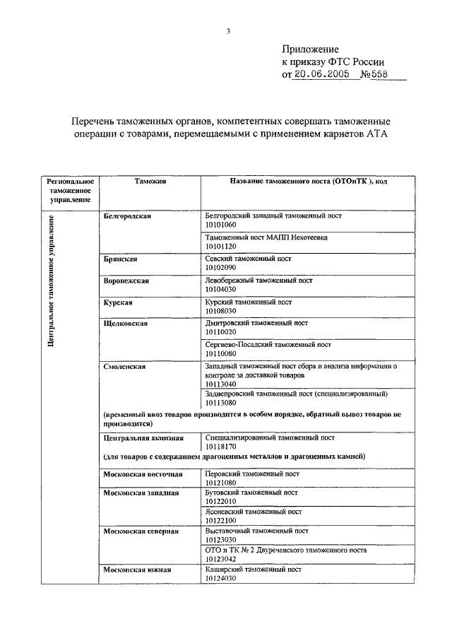 ПРИКАЗ ФТС РФ от 20.06.2005 N 558