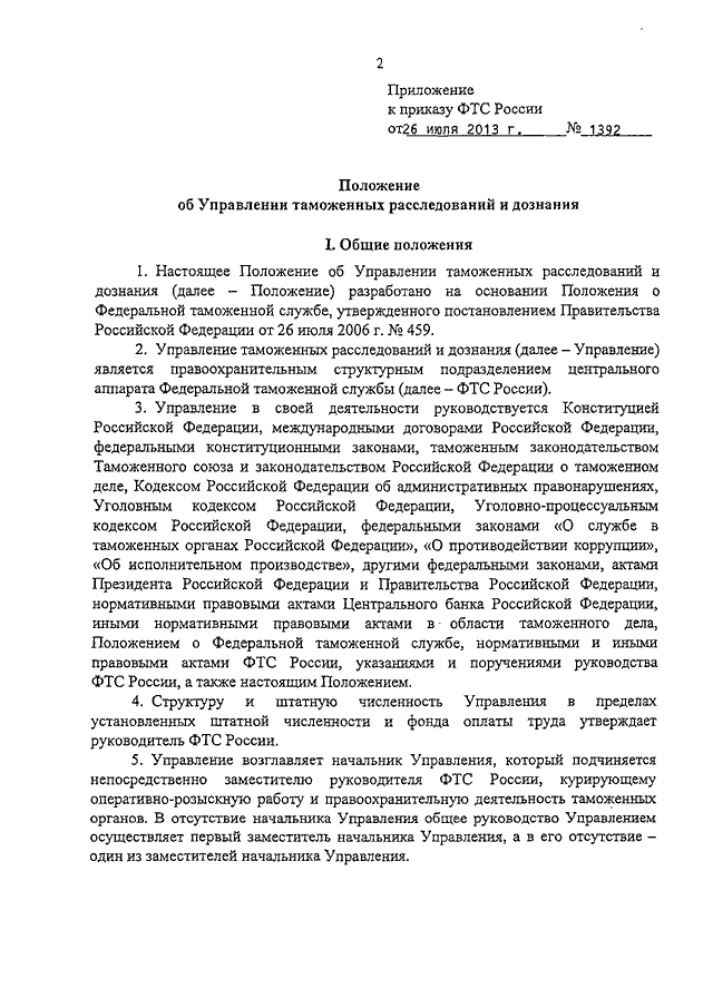 ПРИКАЗ ФТС РФ от 26.07.2013 N 1392