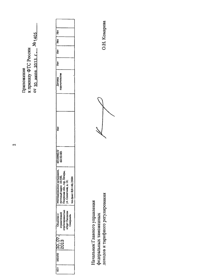 ПРИКАЗ ФТС РФ от 30.07.2013 N 1405