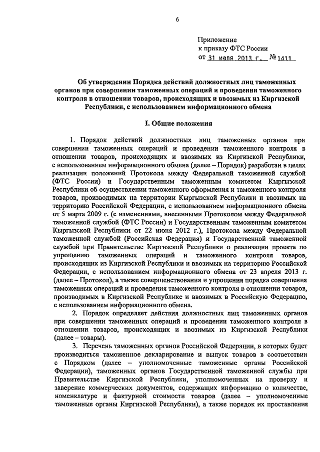 ПРИКАЗ ФТС РФ от 31.07.2013 N 1411