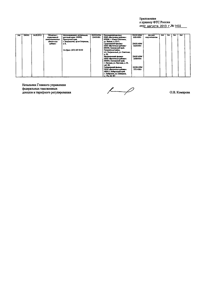 ПРИКАЗ ФТС РФ от 02.08.2013 N 1432