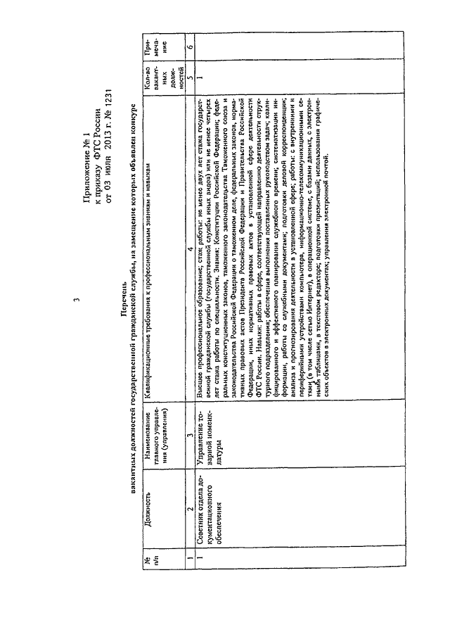 ПРИКАЗ ФТС РФ от 03.07.2013 N 1231