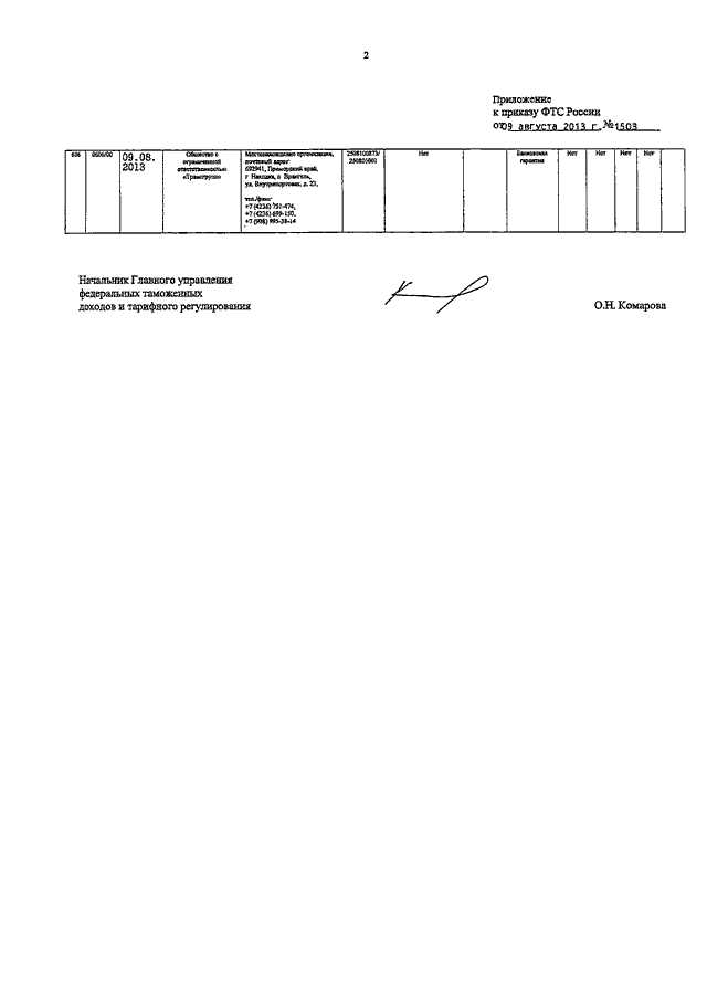 ПРИКАЗ ФТС РФ от 09.08.2013 N 1503
