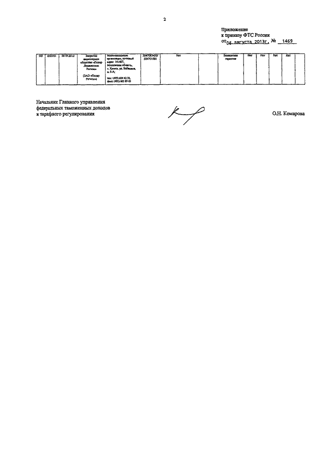 ПРИКАЗ ФТС РФ от 06.08.2013 N 1469