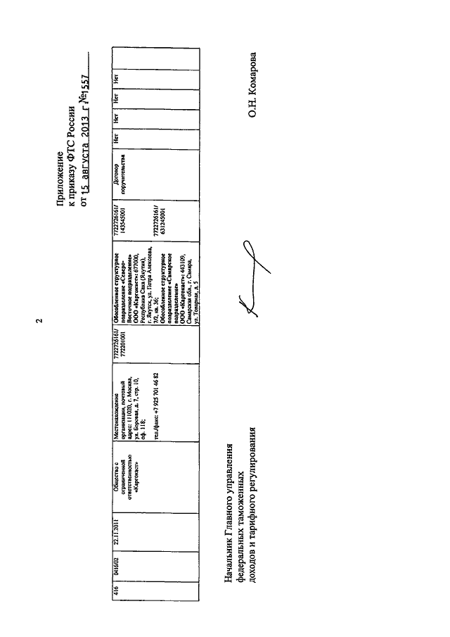 ПРИКАЗ ФТС РФ от 15.08.2013 N 1557
