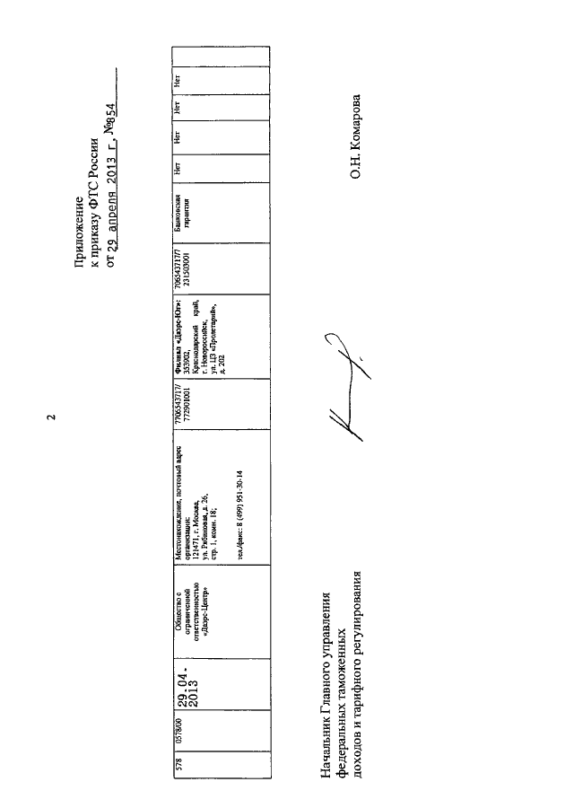 ПРИКАЗ ФТС РФ от 29.04.2013 N 854