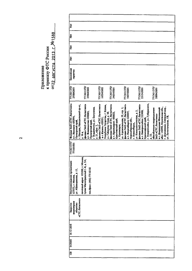 ПРИКАЗ ФТС РФ от 22.08.2013 N 1588