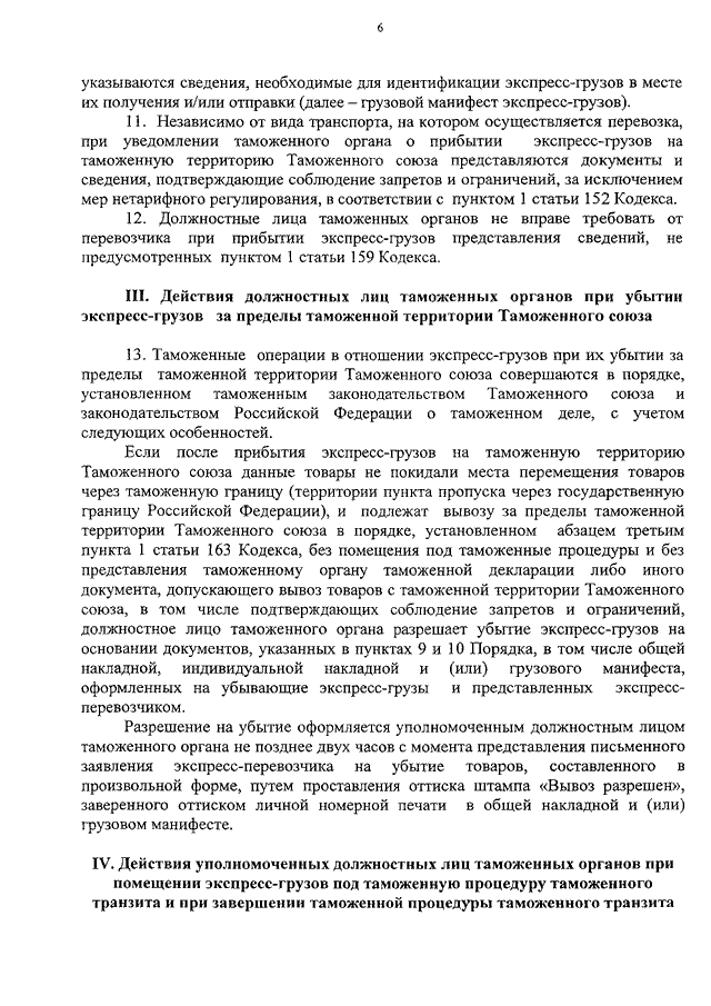 "ОБ УТВЕРЖДЕНИИ ПОРЯДКА СОВЕРШЕНИЯ ТАМОЖЕННЫХ ОПЕРАЦИЙ В ОТНОШЕНИИ ЭКСПРЕСС - ГРУЗОВ, ПЕРЕМЕЩАЕМЫХ ЧЕРЕЗ ТАМОЖЕННУЮ ГРАНИЦУ ТАМОЖЕННОГО СОЮЗА"