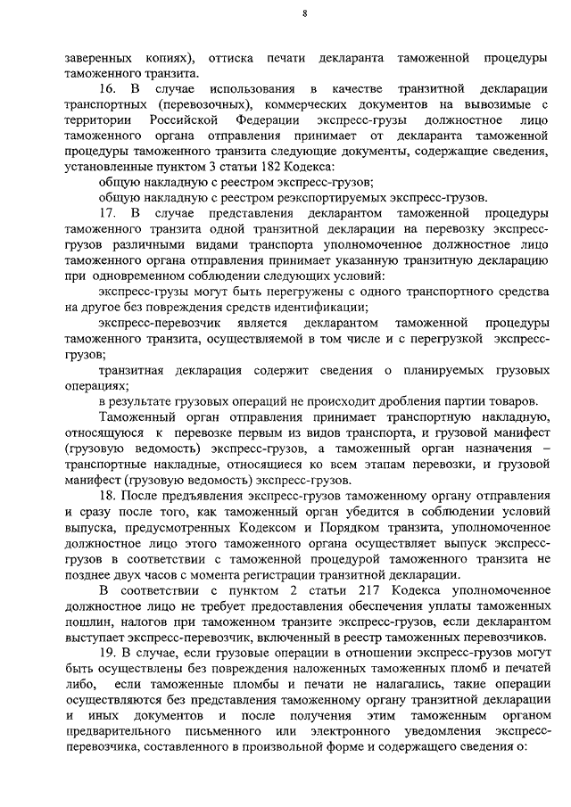 "ОБ УТВЕРЖДЕНИИ ПОРЯДКА СОВЕРШЕНИЯ ТАМОЖЕННЫХ ОПЕРАЦИЙ В ОТНОШЕНИИ ЭКСПРЕСС - ГРУЗОВ, ПЕРЕМЕЩАЕМЫХ ЧЕРЕЗ ТАМОЖЕННУЮ ГРАНИЦУ ТАМОЖЕННОГО СОЮЗА"