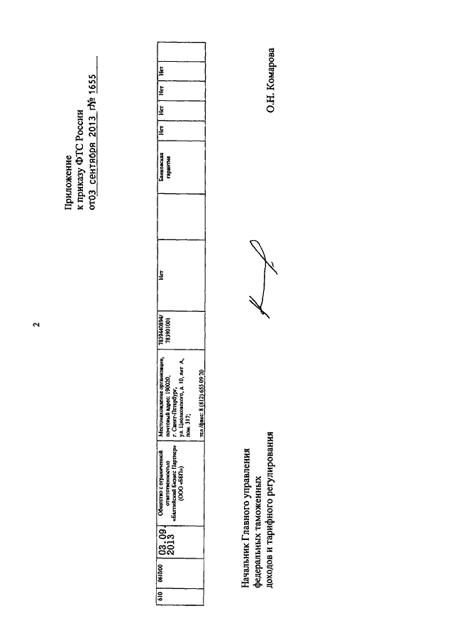 ПРИКАЗ ФТС РФ от 03.09.2013 N 1655