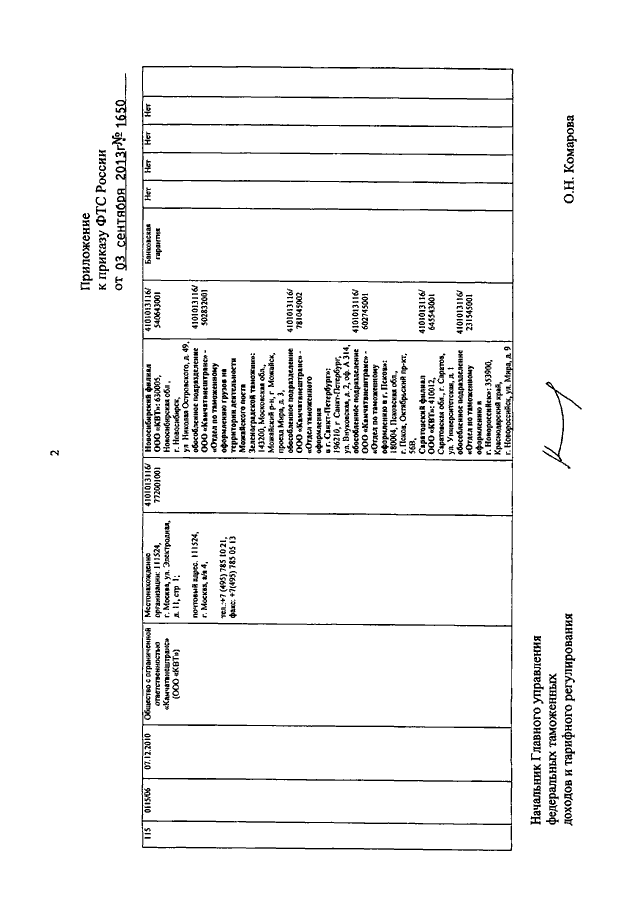 ПРИКАЗ ФТС РФ от 03.09.2013 N 1650