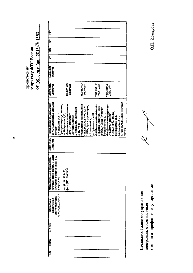 "О ВНЕСЕНИИ ИЗМЕНЕНИЙ В РЕЕСТР ТАМОЖЕННЫХ ПРЕДСТАВИТЕЛЕЙ В ОТНОШЕНИИ ОБЩЕСТВА С ОГРАНИЧЕННОЙ ОТВЕТСТВЕННОСТЬЮ "ТРАНСЛОДЖИКС"