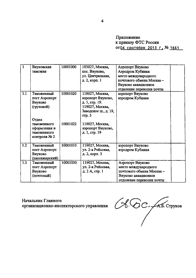 ПРИКАЗ ФТС РФ от 04.09.2013 N 1661