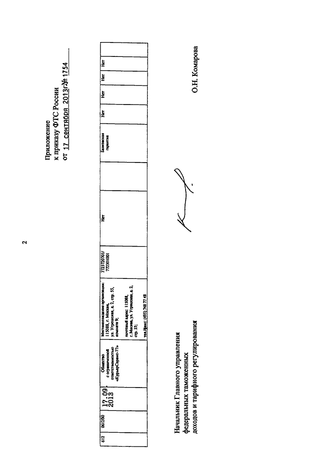ПРИКАЗ ФТС РФ от 17.09.2013 N 1754