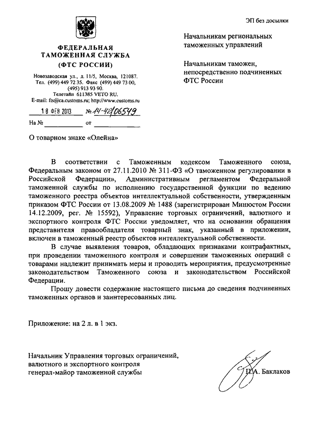 ПИСЬМО ФТС РФ от 18.02.2013 N 14-42/06549