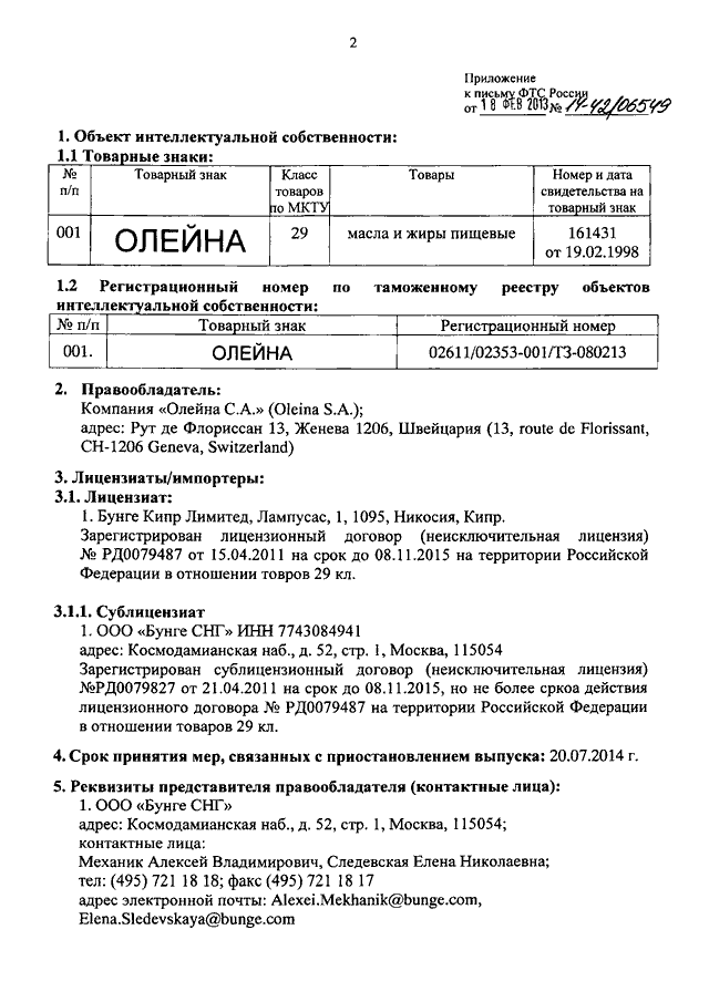 "О ТОВАРНОМ ЗНАКЕ "ОЛЕЙНА"