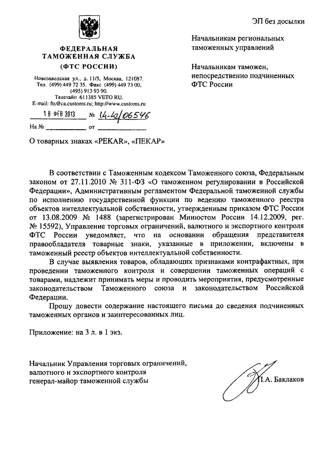ПИСЬМО ФТС РФ от 18.02.2013 N 14-42/06546