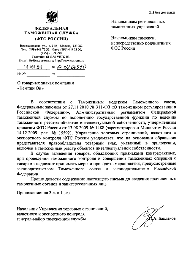 ПИСЬМО ФТС РФ от 18.02.2013 N 14-42/06550