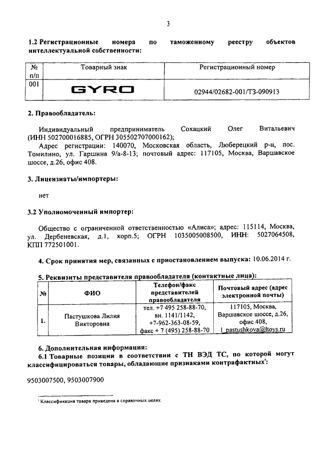 "О ТОВАРНОМ ЗНАКЕ "GYRO"