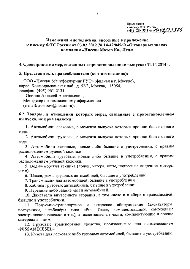 ПИСЬМО ФТС РФ от 06.09.2013 N 14-42/39376