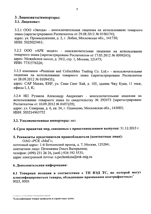 "О ТОВАРНЫХ ЗНАКАХ ОАО "РСК "МИГ"