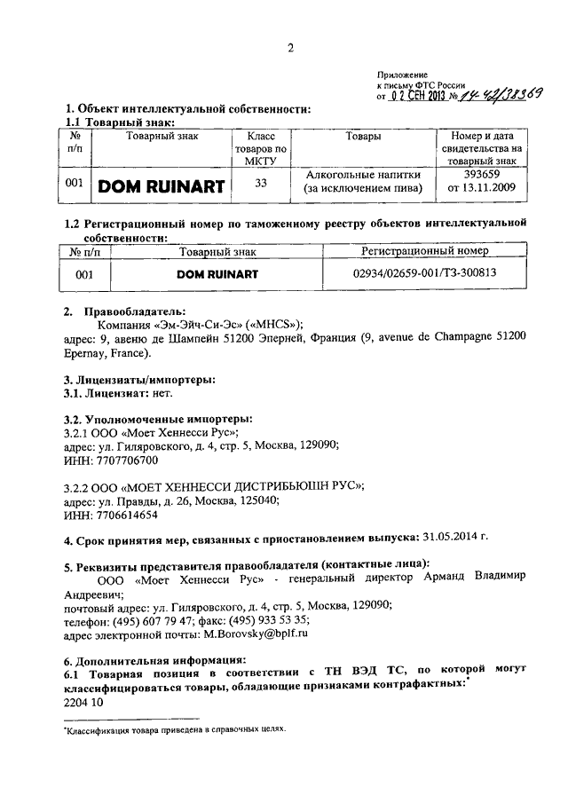 ПИСЬМО ФТС РФ от 02.09.2013 N 14-42/38369