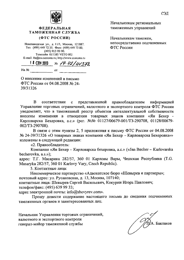 ПИСЬМО ФТС РФ от 18.09.2013 N 14-42/41378