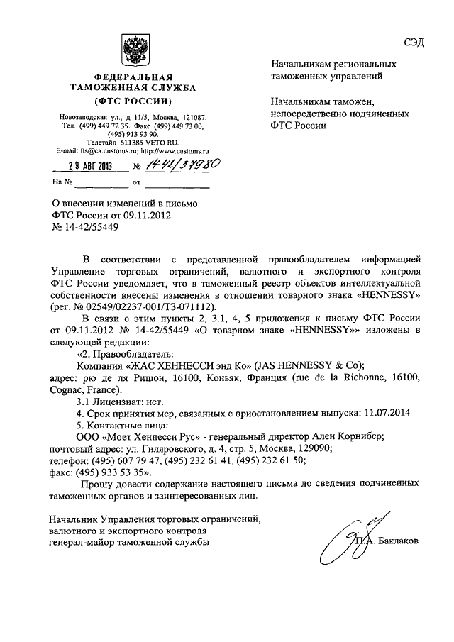ПИСЬМО ФТС РФ от 29.08.2013 N 14-42/37980