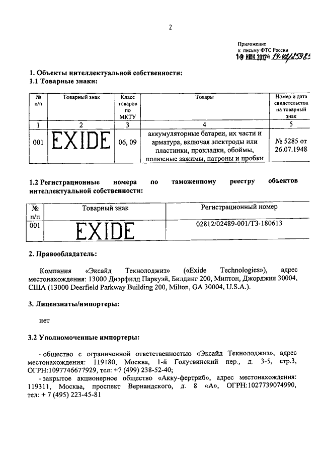 "О ТОВАРНОМ ЗНАКЕ КОМПАНИИ "EXIDE TECHNOLOGIES"