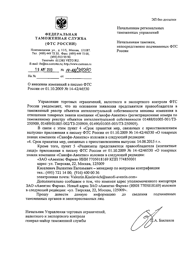 ПИСЬМО ФТС РФ от 19.08.2013 N 14-42/36090