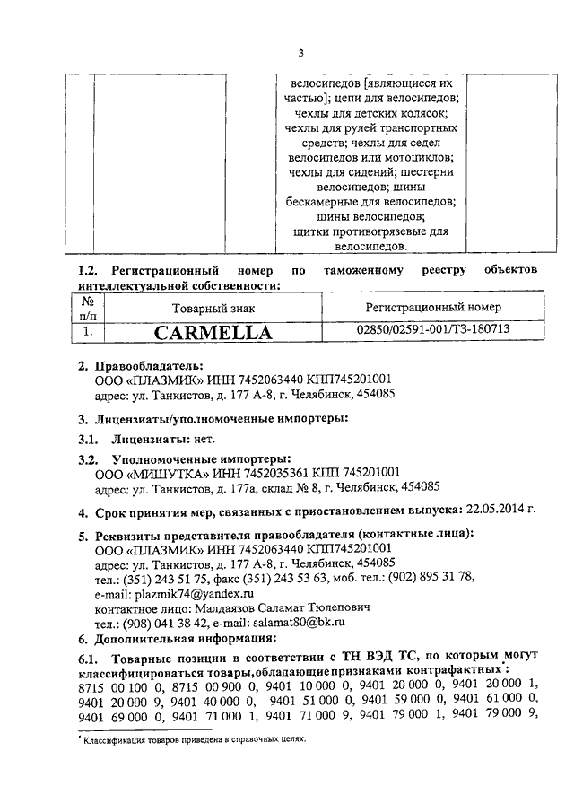 "О ТОВАРНОМ ЗНАКЕ "CARMELLA"