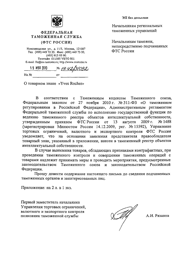ПИСЬМО ФТС РФ от 19.07.2013 N 14-42/31092