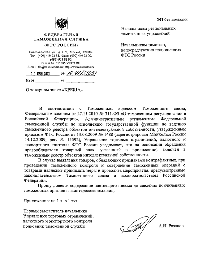 ПИСЬМО ФТС РФ от 19.07.2013 N 14-42/31091