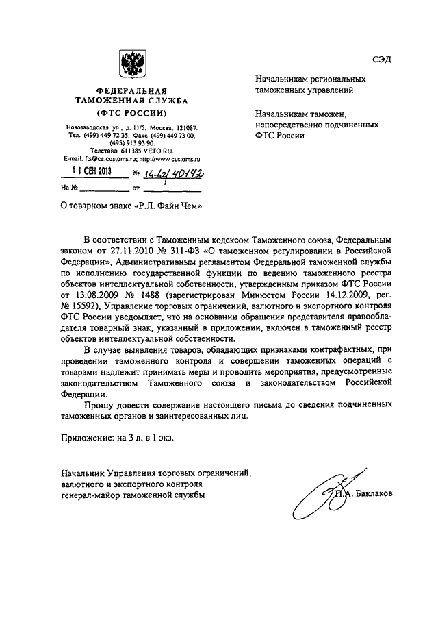 ПИСЬМО ФТС РФ от 11.09.2013 N 14-42/40142