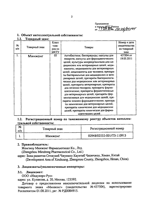 "О ТОВАРНОМ ЗНАКЕ "МИНЖОНГ"