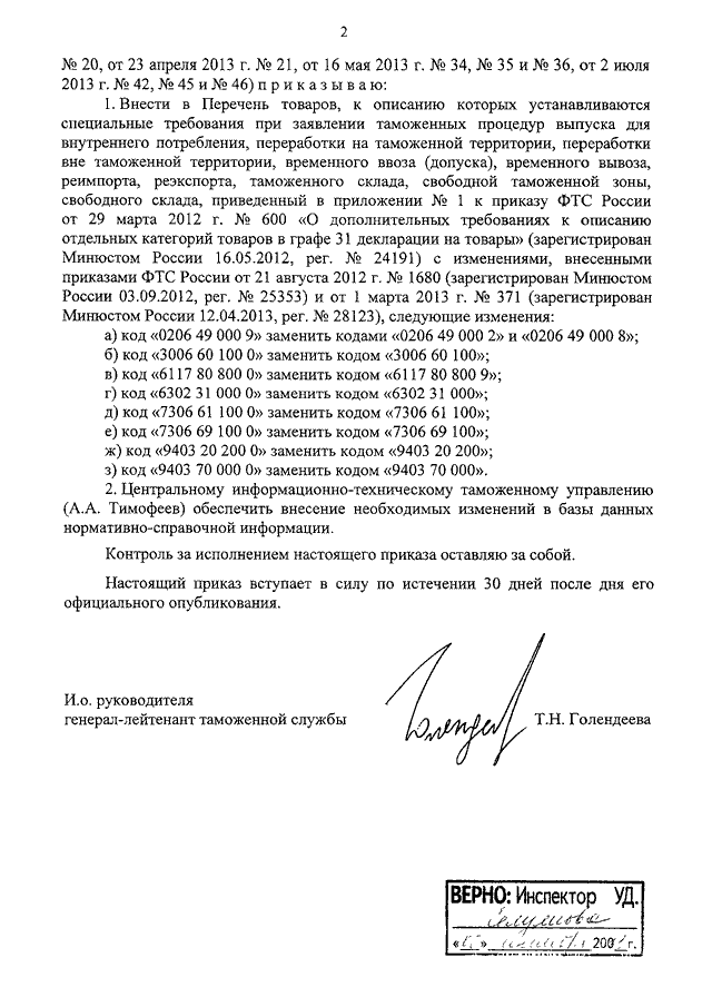 "О ВНЕСЕНИИ ИЗМЕНЕНИЙ В ПЕРЕЧЕНЬ ТОВАРОВ, К ОПИСАНИЮ КОТОРЫХ УСТАНАВЛИВАЮТСЯ СПЕЦИАЛЬНЫЕ ТРЕБОВАНИЯ ПРИ ЗАЯВЛЕНИИ ТАМОЖЕННЫХ ПРОЦЕДУР ВЫПУСКА ДЛЯ ВНУТРЕННЕГО ПОТРЕБЛЕНИЯ, ПЕРЕРАБОТКИ НА ТАМОЖЕННОЙ ТЕРРИТОРИИ, ПЕРЕРАБОТКИ ВНЕ ТАМОЖЕННОЙ ТЕРРИТОРИИ, ВРЕМЕННОГО ВВОЗА (ДОПУСКА), ВРЕМЕННОГО ВЫВОЗА, РЕИМПОРТА, РЕЭКСПОРТА, ТАМОЖЕННОГО СКЛАДА, СВОБОДНОЙ ТАМОЖЕННОЙ ЗОНЫ, СВОБОДНОГО СКЛАДА, ПРИВЕДЕННЫЙ В ПРИЛОЖЕНИИ N 1 К ПРИКАЗУ ФТС РОССИИ ОТ 29 МАРТА 2012 Г. N 600"
