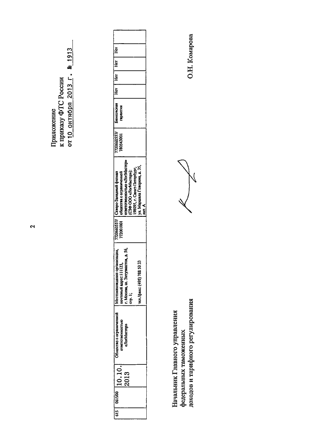 ПРИКАЗ ФТС РФ от 10.10.2013 N 1913