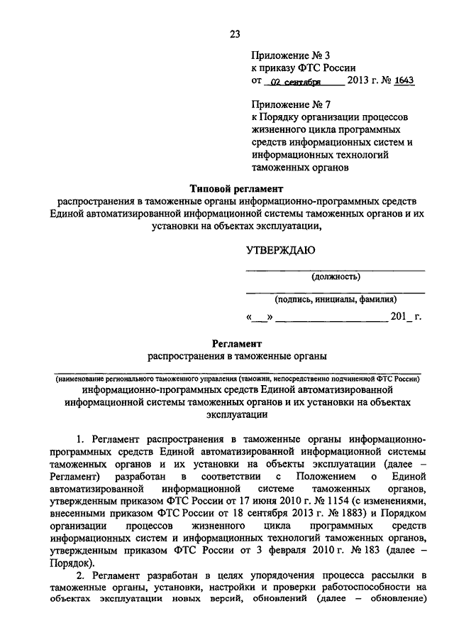 ПРИКАЗ ФТС РФ от 02.09.2013 N 1643