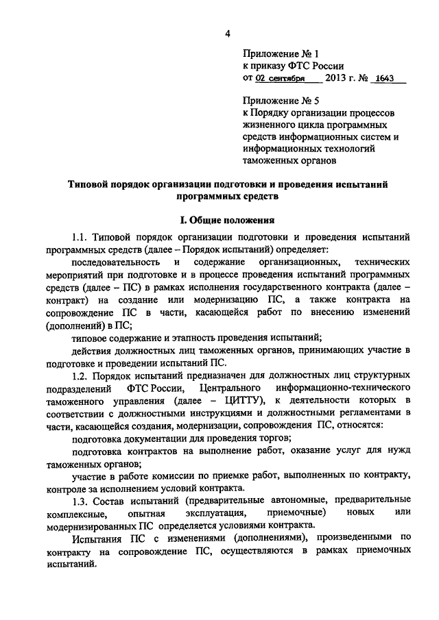 ПРИКАЗ ФТС РФ от 02.09.2013 N 1643