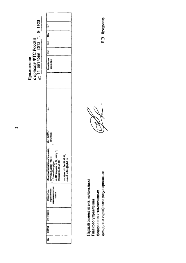 ПРИКАЗ ФТС РФ от 14.10.2013 N 1923