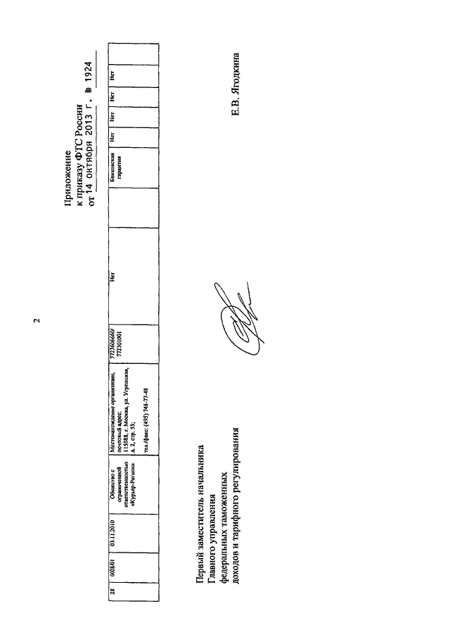 ПРИКАЗ ФТС РФ от 14.10.2013 N 1924