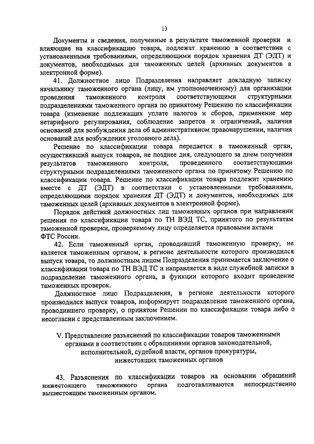 "ОБ УТВЕРЖДЕНИИ ИНСТРУКЦИИ О ДЕЙСТВИЯХ ДОЛЖНОСТНЫХ ЛИЦ ТАМОЖЕННЫХ ОРГАНОВ, ОСУЩЕСТВЛЯЮЩИХ КЛАССИФИКАЦИЮ ТОВАРОВ И ТАМОЖЕННЫЙ КОНТРОЛЬ ПРИ ПРОВЕРКЕ ПРАВИЛЬНОСТИ КЛАССИФИКАЦИИ ТОВАРОВ ПО ЕДИНОЙ ТОВАРНОЙ НОМЕНКЛАТУРЕ ВНЕШНЕЭКОНОМИЧЕСКОЙ ДЕЯТЕЛЬНОСТИ ТАМОЖЕННОГО СОЮЗА"