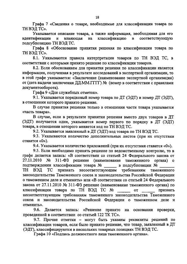 "ОБ УТВЕРЖДЕНИИ ИНСТРУКЦИИ О ДЕЙСТВИЯХ ДОЛЖНОСТНЫХ ЛИЦ ТАМОЖЕННЫХ ОРГАНОВ, ОСУЩЕСТВЛЯЮЩИХ КЛАССИФИКАЦИЮ ТОВАРОВ И ТАМОЖЕННЫЙ КОНТРОЛЬ ПРИ ПРОВЕРКЕ ПРАВИЛЬНОСТИ КЛАССИФИКАЦИИ ТОВАРОВ ПО ЕДИНОЙ ТОВАРНОЙ НОМЕНКЛАТУРЕ ВНЕШНЕЭКОНОМИЧЕСКОЙ ДЕЯТЕЛЬНОСТИ ТАМОЖЕННОГО СОЮЗА"