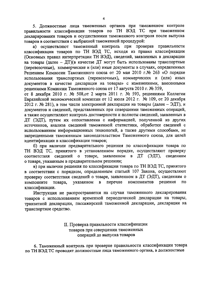 "ОБ УТВЕРЖДЕНИИ ИНСТРУКЦИИ О ДЕЙСТВИЯХ ДОЛЖНОСТНЫХ ЛИЦ ТАМОЖЕННЫХ ОРГАНОВ, ОСУЩЕСТВЛЯЮЩИХ КЛАССИФИКАЦИЮ ТОВАРОВ И ТАМОЖЕННЫЙ КОНТРОЛЬ ПРИ ПРОВЕРКЕ ПРАВИЛЬНОСТИ КЛАССИФИКАЦИИ ТОВАРОВ ПО ЕДИНОЙ ТОВАРНОЙ НОМЕНКЛАТУРЕ ВНЕШНЕЭКОНОМИЧЕСКОЙ ДЕЯТЕЛЬНОСТИ ТАМОЖЕННОГО СОЮЗА"