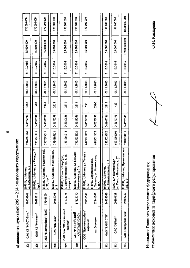 "О ВНЕСЕНИИ ИЗМЕНЕНИЙ В РЕЕСТР БАНКОВ, ИНЫХ КРЕДИТНЫХ ОРГАНИЗАЦИЙ И СТРАХОВЫХ ОРГАНИЗАЦИЙ, ОБЛАДАЮЩИХ ПРАВОМ ВЫДАЧИ БАНКОВСКИХ ГАРАНТИЙ УПЛАТЫ ТАМОЖЕННЫХ ПОШЛИН, НАЛОГОВ, УТВЕРЖДЕННЫЙ ПРИКАЗОМ ФТС РОССИИ ОТ 2 СЕНТЯБРЯ 2013 Г. N 1644"