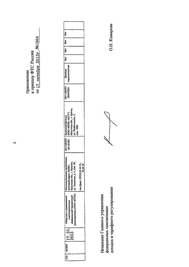ПРИКАЗ ФТС РФ от 17.10.2013 N 1964