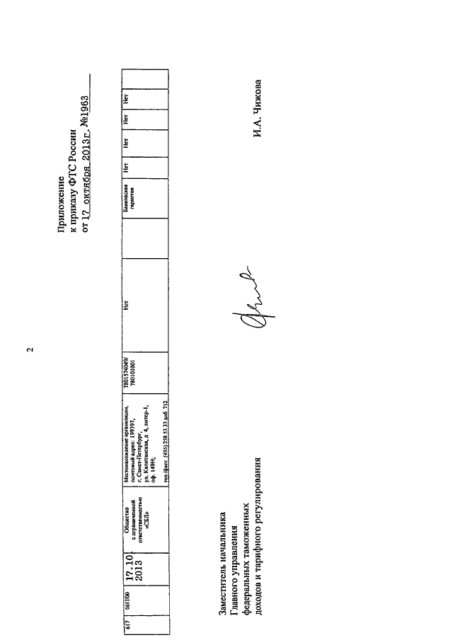 ПРИКАЗ ФТС РФ от 17.10.2013 N 1963