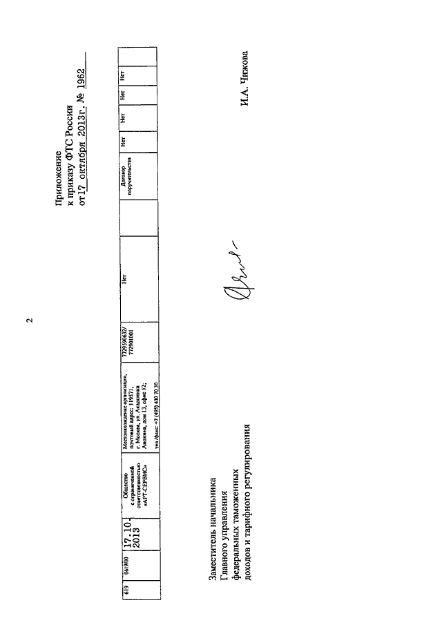 ПРИКАЗ ФТС РФ от 17.10.2013 N 1962