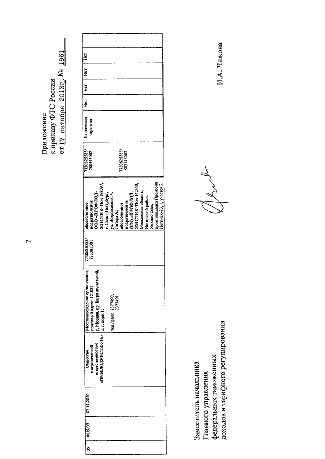 ПРИКАЗ ФТС РФ от 17.10.2013 N 1961