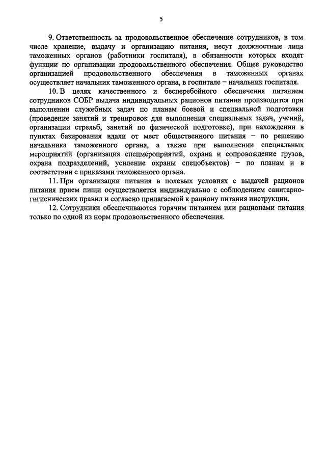 "О ПОРЯДКЕ ПРОДОВОЛЬСТВЕННОГО ОБЕСПЕЧЕНИЯ В ТАМОЖЕННЫХ ОРГАНАХ РОССИЙСКОЙ ФЕДЕРАЦИИ"